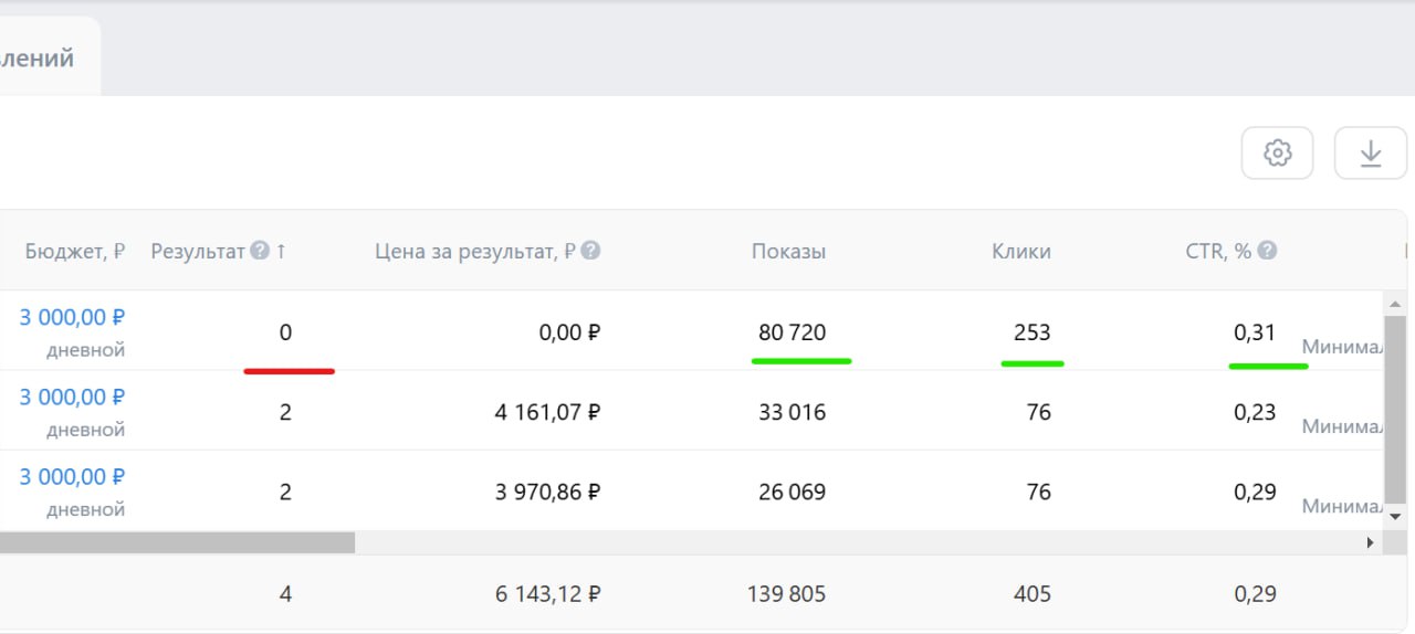 • Скрины кабинетов с результатам рекламы Вконтакте